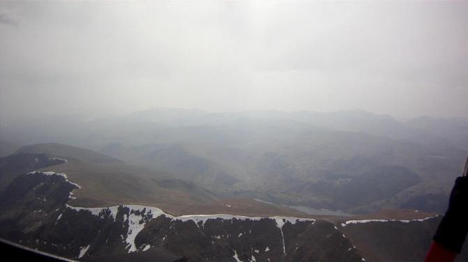 As we were almost there the first to take off (Kitt) showed it may be hard work. Take off was light to gusty and a bit off putting for some but during the light lulls it was easy enough. Mike and Kitt went over the back - shortly followed by Chris, Ian and then Geoff on his own. I was finding it hard work - the thermals seemed very broken and short lived and during a switch off most slope landed below the top. More in desperation I took a less than convincing thermal to a non too convincing height and gambled over into walk out territory below Stoney Cove. Things got a little desperate here - low and with little happening. A bit of soaring a small bump and I managed to get about 600' - enough to get me over to the better Red Screes above Kirkstone. A least a pub for consolation if it didn't work out - and a road.