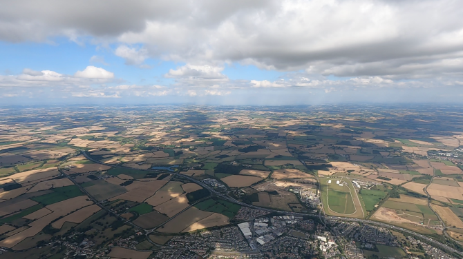 If the escape thermal had been rather weak, the next was very strong and I knew I was now truly established in the convergence with the clouds lined up nicely downwind. The rest of the flight was very starightforward and really just a case of navigating my way down the convergence, sometimes ducking to left or right to either find a climb or avoid the darkest bits. Approaching Harrogate I bumped into Rob and I knew Chris K was close from the radio chatter - but no GPS equals no FLARM, so I couldn't pinpint him.